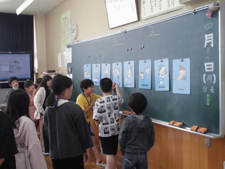 英語で、いろいろなスポーツの言い方を練習し、みんなとゲームをしながら覚えました。![]()