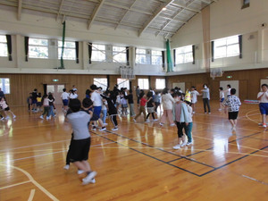最後に、なかよし班ごとに自己紹介をし、全員で「じゃんけん列車」を楽しみました。