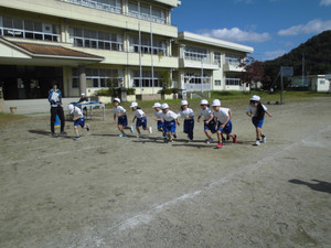 体育の前半に、持久走の練習を行っていました。長い距離を走るには、ペース配分を考えたり、練習を重ね体力をつけたりすることが大切です。友達同士、お互いに励まし合いながら一生懸命走る姿が見られました。