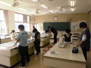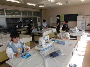 エプロンを制作していました。脇の三つ折りにアイロンをかけたり、ミシンで縫ったりしていました。完成が楽しみです。